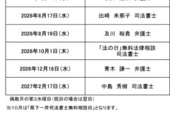 令和8年度 弁護士・司法書士無料法律相談開催のお知らせ