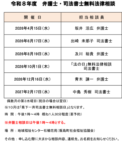 申込・お問い合わせ先:飯島町社会福祉協議会 ℡ 86-5511まで お気軽にご相談ください。